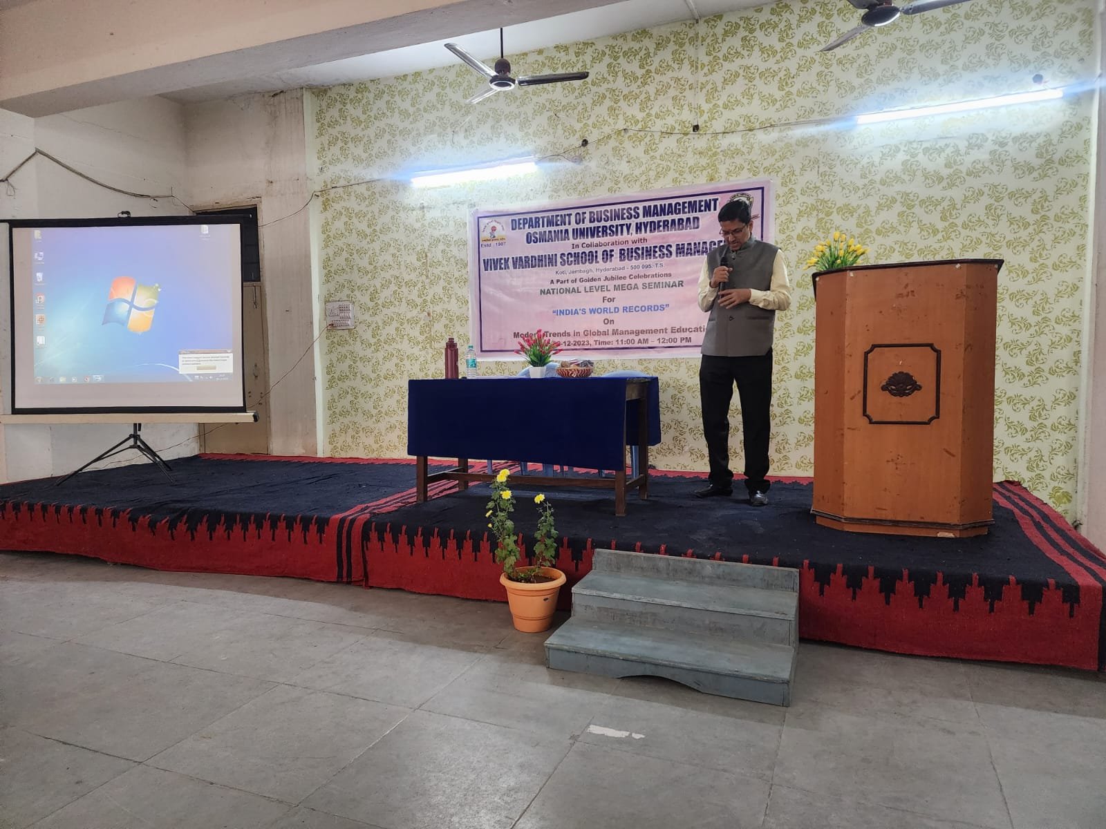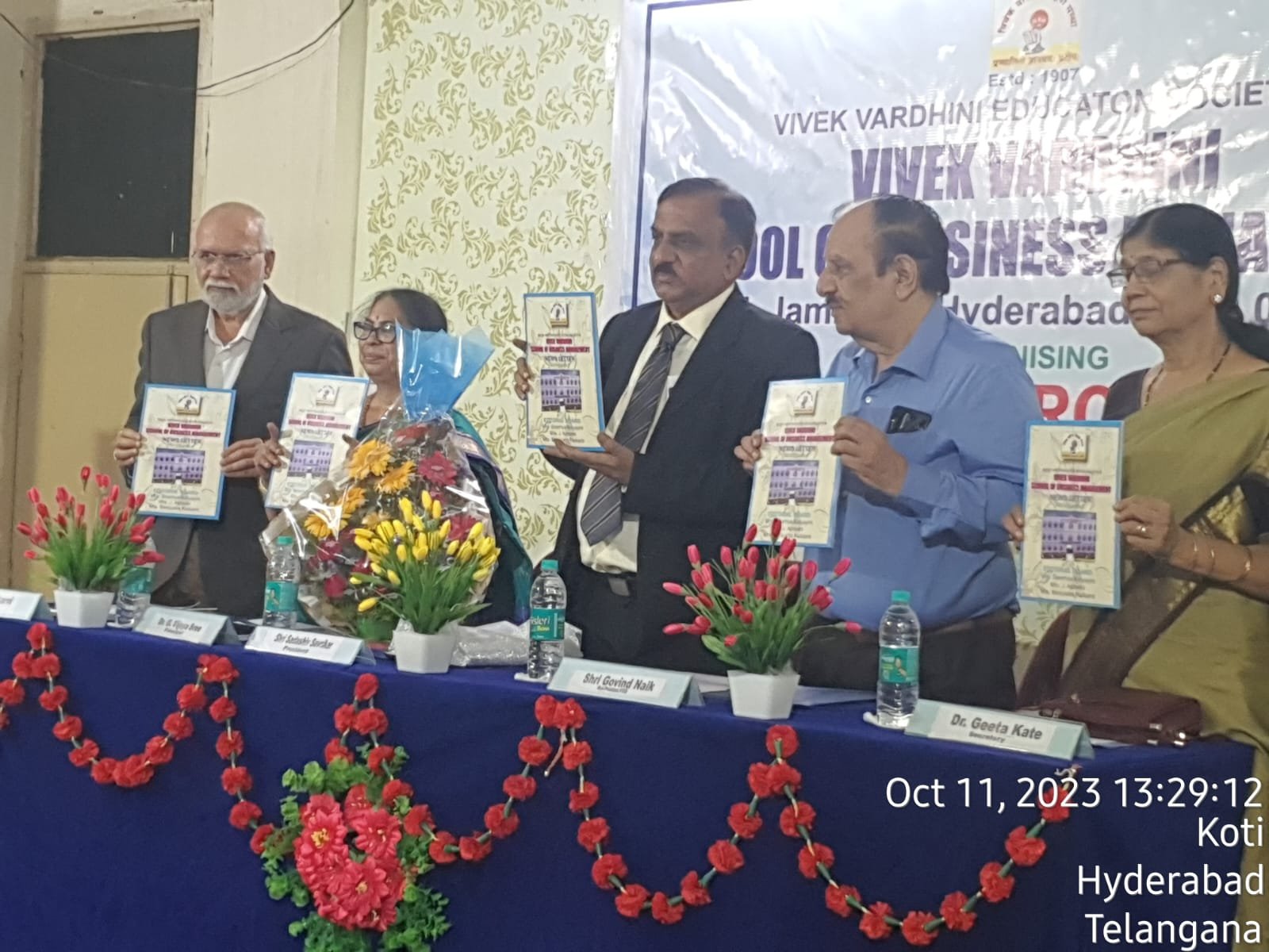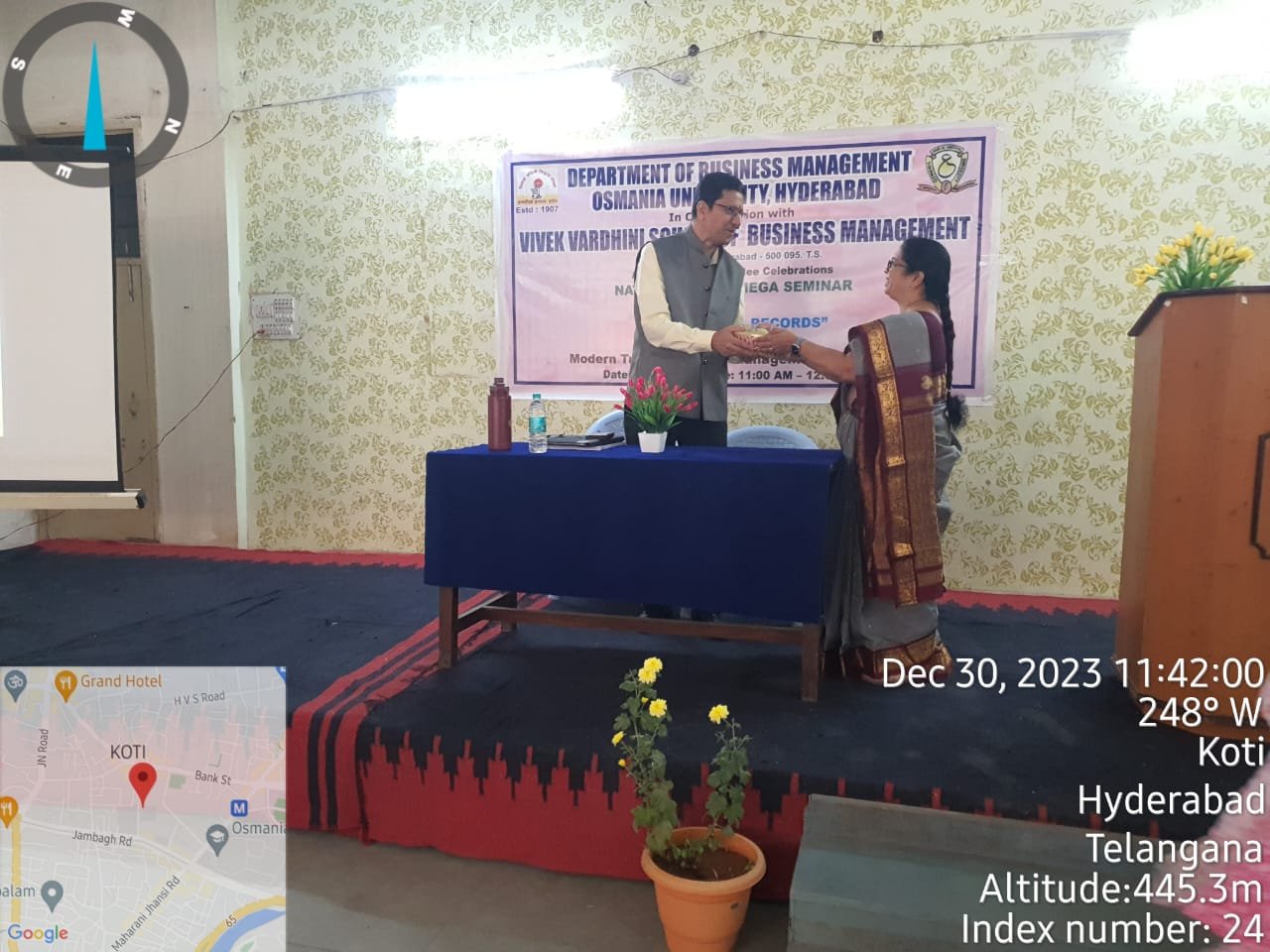 National Seminar on “trends in global management education ” at VVSBM as a part of Golden jubilee Celebrations of osmania university, 30 Dec 2023 | Dr.Prasanna Khadkikar , professor in commerce as a guest speaker .